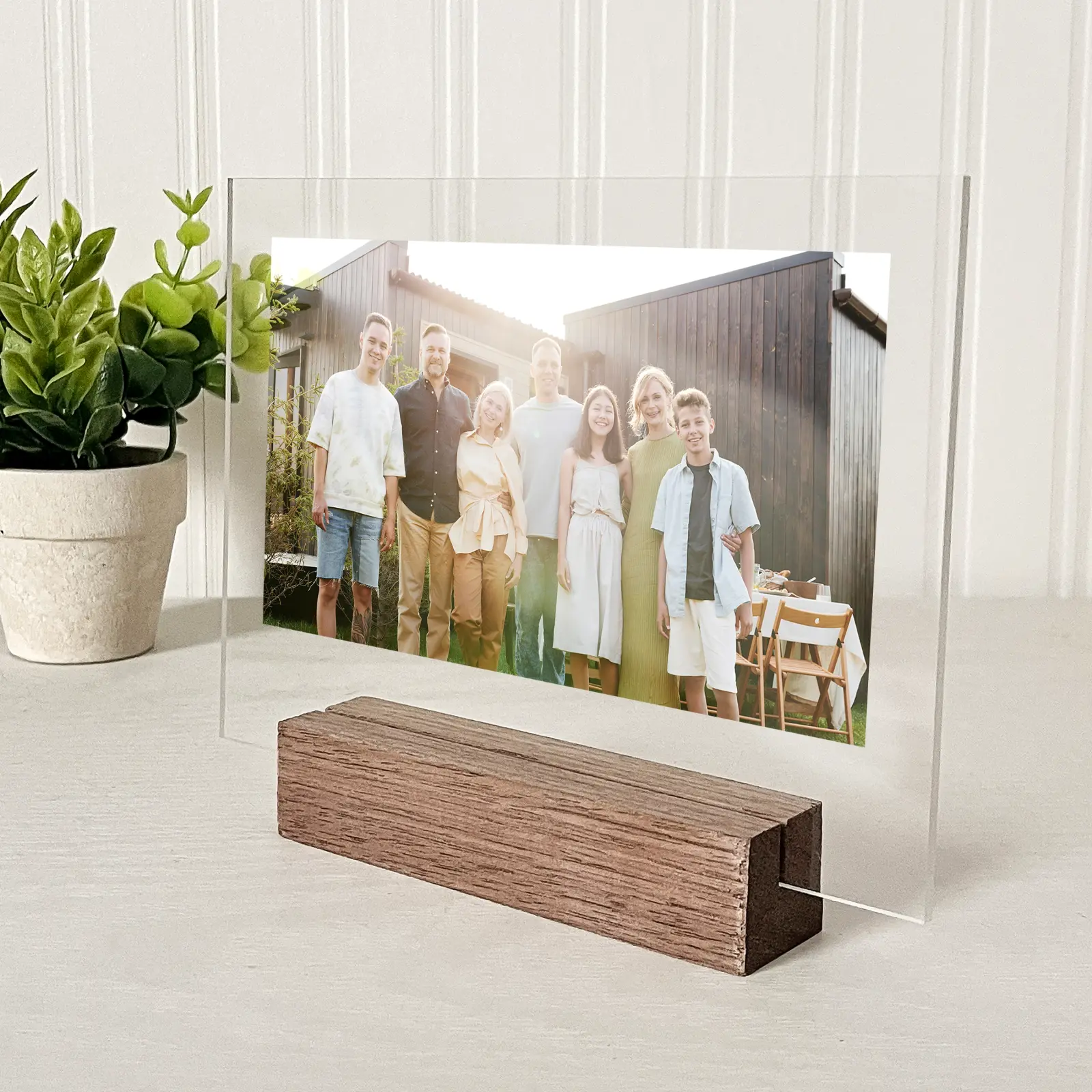 Display your cherished memories with this beautiful acrylic photo plaque. This freestanding display features a clear acrylic panel that makes your photo stand out with a modern, three-dimensional effect.