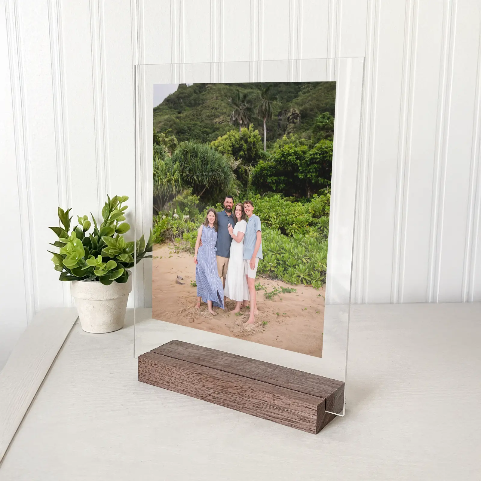 Display your cherished memories with this beautiful acrylic photo plaque. This freestanding display features a clear acrylic panel that makes your photo stand out with a modern, three-dimensional effect.