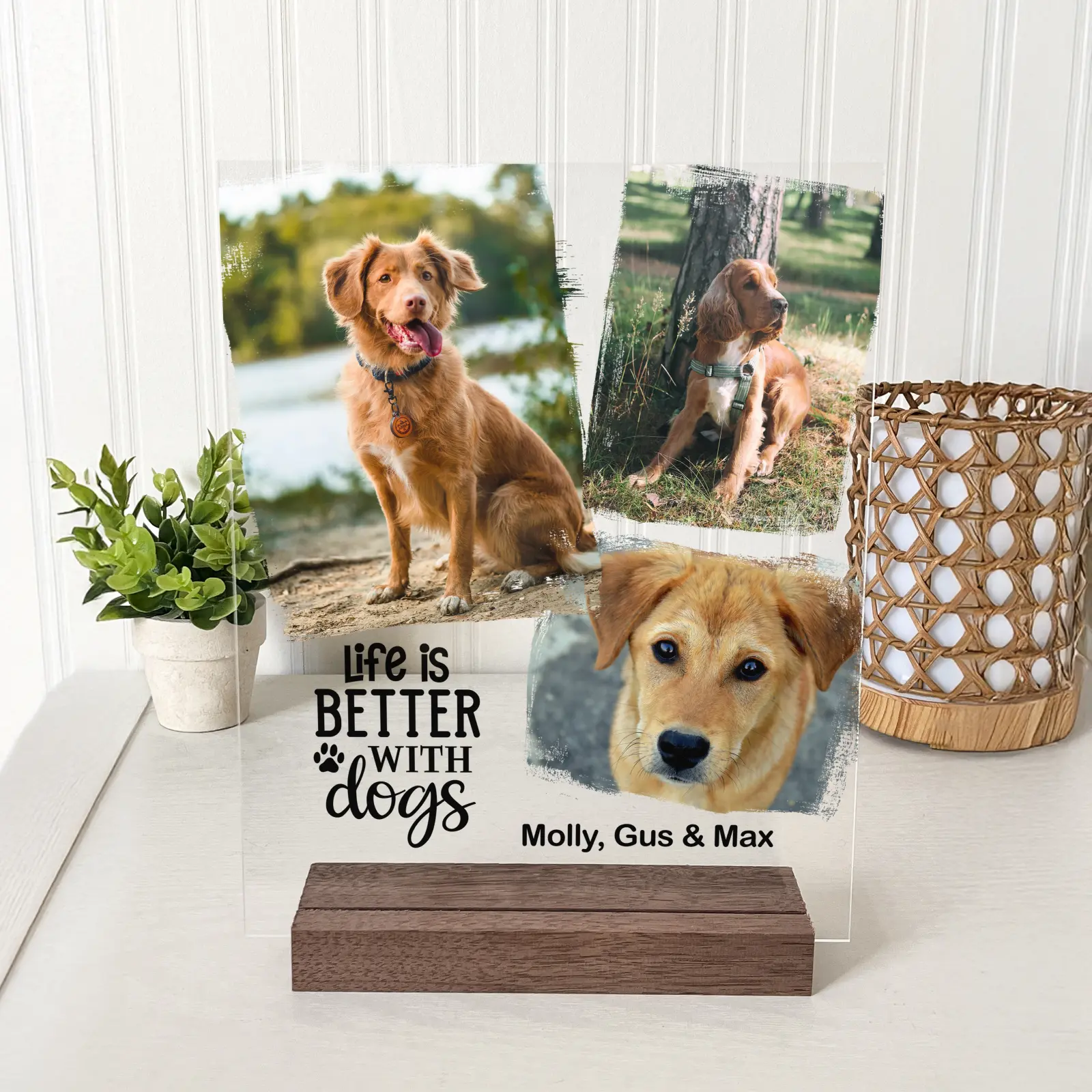 Display your cherished memories with this beautiful acrylic photo plaque. This freestanding display features a clear acrylic panel that makes your photo stand out with a modern, three-dimensional effect.
