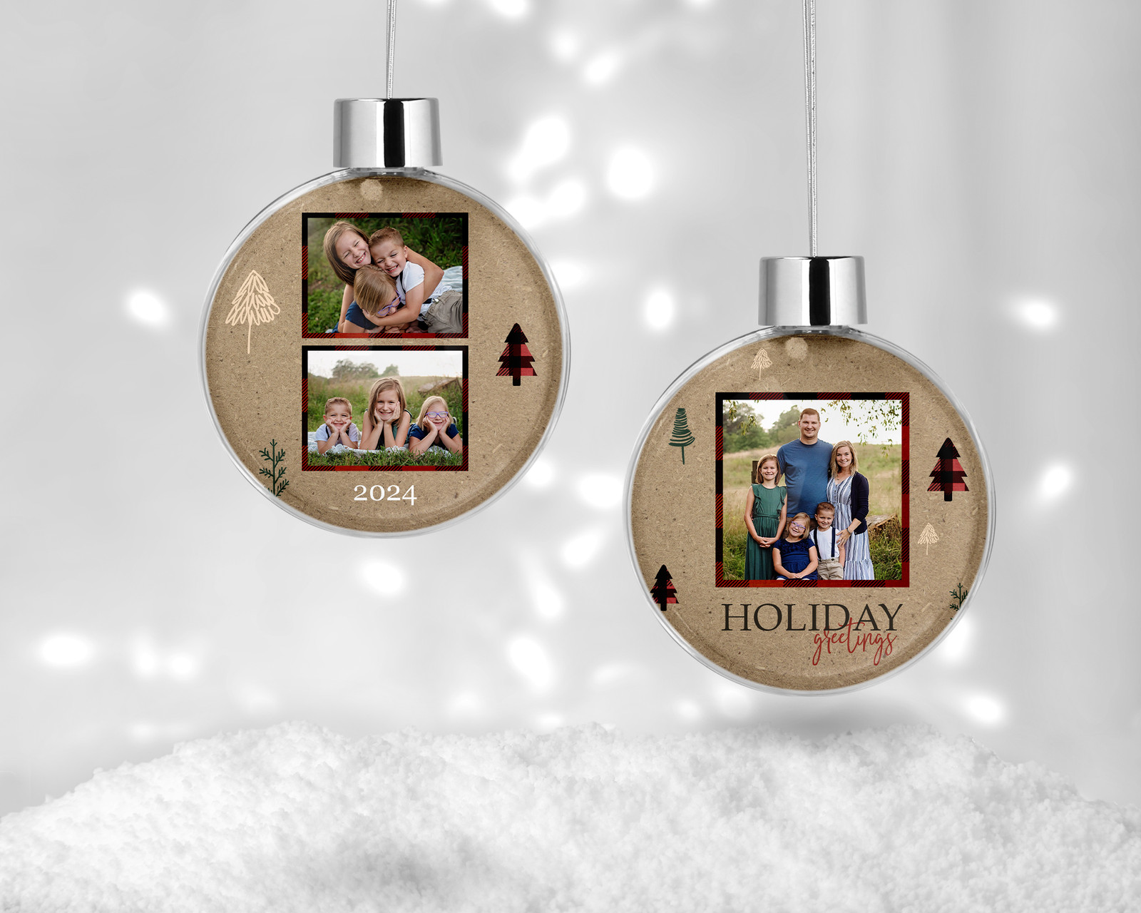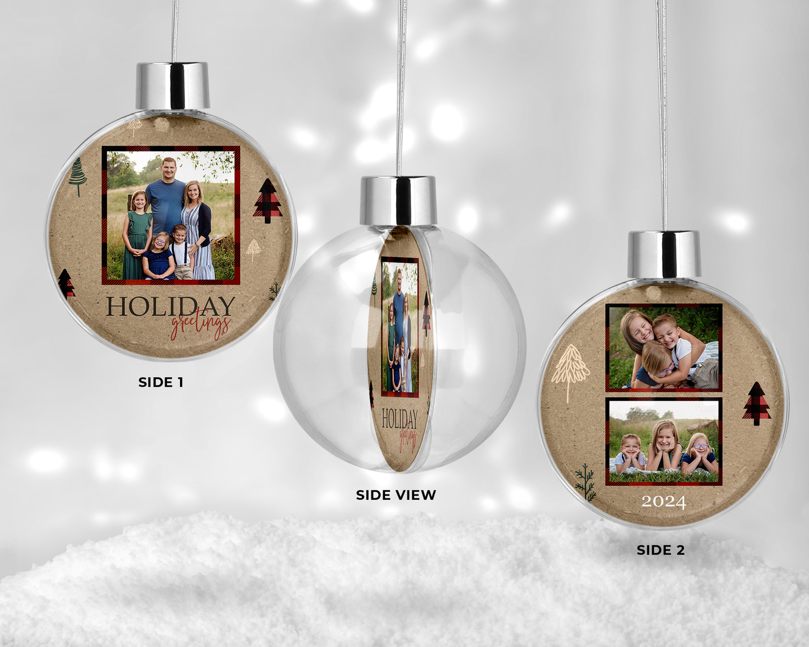 Adorn your tree with a magical keepsake! The unique ornament features two clear acrylic discs that hold your photo securely inside, giving it a floating appearance. The ornament is perfect for showcasing family photos, a new baby, a pet, or a special milestone. It's a wonderful way to celebrate the holidays and create a personalized heirloom that you'll cherish for years.