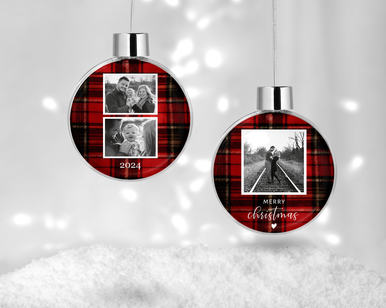 Adorn your tree with a magical keepsake! The unique ornament features two clear acrylic discs that hold your photo securely inside, giving it a floating appearance. The ornament is perfect for showcasing family photos, a new baby, a pet, or a special milestone. It's a wonderful way to celebrate the holidays and create a personalized heirloom that you'll cherish for years.